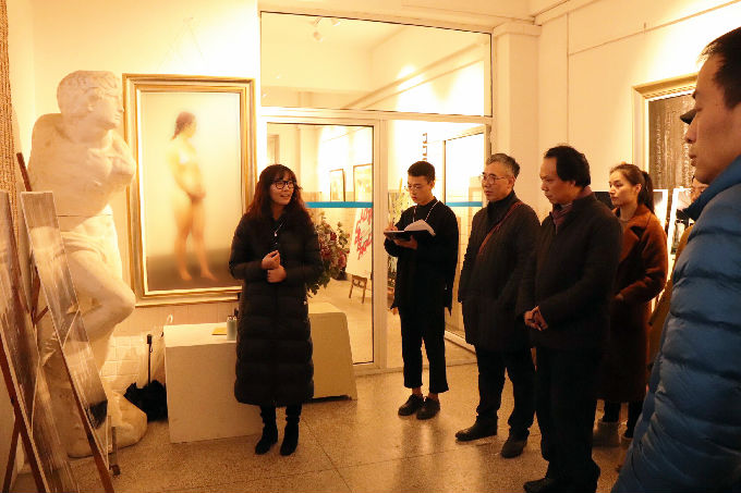 本网讯 12月20日起,为期一周的艺术学院产品设计系三位老师个人作品展刚刚落下帷幕,12月28日下午环境艺术设计系王荻、邓慧、秦园三位老师个人作品展在六号教学楼七楼画廊接力举办,标志着艺术学院教师举办个人作品展示交流活动已经进入常态化。艺术学院院长张锡教授,副院长朱宗明教授、李方明教授、朱宁副教授,院办主任谈稚军老师出席活动并听取了三位参展老师的作品介绍。院教学秘书李丹老师、音乐表演系主任吴琳副教授、数字媒体艺术系主任廖智老师、美术系主任谭小健老师、实训室副主任卢利波老师及环境艺术设计系师生参加了展览活动。