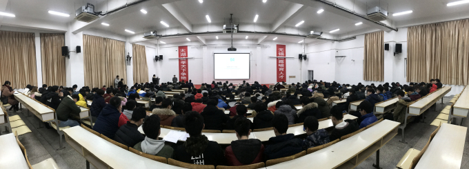 本网讯 乐教传道,乐学修身。2018年1月4日晚上6点半,机电工程学院在7号楼102隆重举行2016-2017学年奖学金表彰大会。机电工程学院袁惠新院长,机电工程学院党总支副书记杨学圣,机电工程学院学工秘书邓珂,机电分团委副书记许心怡,院长助理杨敏老师,以及辅导员明耀堃老师出席了表彰大会。各系老师、辅导员和获奖学生等400余人参加大会。大会由机电工程学院辅导员佘子骞主持。