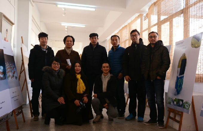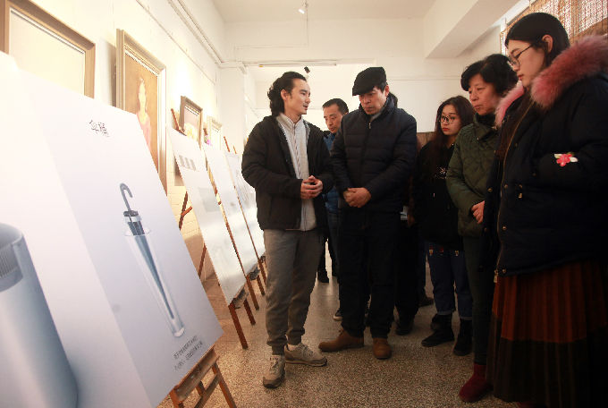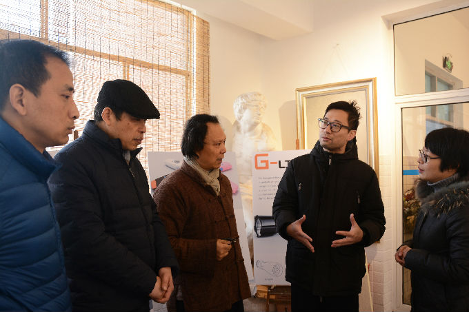 张锡院长首先对三位老师作品的创意构思、设计制作效果作出肯定,预祝展览圆满成功,在与三位老师深入交流的同时也提出了建设性的指导意见。