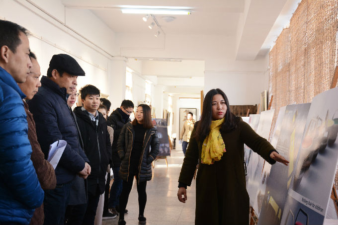 本网讯 12月20日上午,艺术学院产品设计系蒋满群、胡铭、潘莹莹等三位老师在6号教学楼7楼画廊举办个人设计作品展。艺术学院院长张锡教授,副院长朱宗明教授、朱宁副教授,院办主任谈稚军老师出席活动并听取了参展老师的汇报,院教学秘书李丹老师、朱俊伟老师、产品设计系主任邵炜丹老师、视觉传达系主任陈玮副教授、数字媒体系督导时春风副教授及产品设计系全体教师、部分学生代表参加了展览活动。