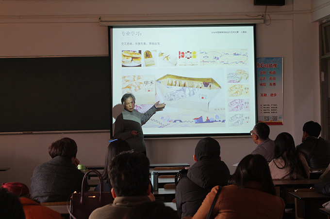 接着,孔教授针对beat365官网艺术学院学生的性格特征进行了分析,提出了相应的教学形式。他希望老师们“以讲、练、纠错、示范相结合,以反复和深入提升质量”、“学生以自己作业走上讲台交流学习”、“根据各阶段学习问题随时调正教学计划”。孔教授介绍了自己的教学经验,针对专题性学习从包装工作坊分五期逐一讲述,第一期主题“紫砂产品包装”、第二期主题“土特产创新包装”、第三期主题“印刷中的设计”、第四期主题“再见,泥人”、第五期主题“从纸到制品”,展示了学生优秀作品,发掘了学生的创新思维和动手实践能力。