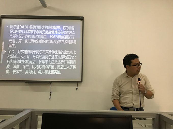 杨伟东老师就市场营销学这门课程的内容进行了精彩的讲课示范。市场营销学是一门与时俱进的课程,内容既丰富又灵活。杨伟东老师在本次讲课中就对书本上没有的知识进行了补充。他采用了阿尔迪超市、可口可乐公司和亚马逊购物三个现实生活中的案例来分析当下流行的营销策略。通过从网上下载最新的宣传广告视频,杨伟东老师一边播放一边讲解其中蕴含的营销理念,让大家听得津津有味,并且在欢笑声中学习到了当下最为流行的营销策略。