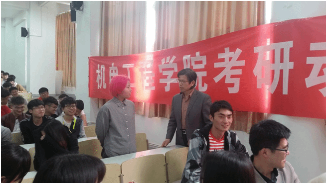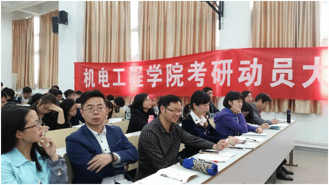 会上,机电工程学院袁惠新院长作考研动员讲话,围绕为什么要考研、专业的选择、硕士研究生的基本状况、考研准备、考试状态调整等多个方面作了生动演讲,并对“端正学习态度、树立良好的学风”提出了更高的要求,鼓励全体学生积极备考,实践学校良好学风。随后,学院优秀校友,机械117班石斌磊为全体同学分享了自己的学习和考研经验。