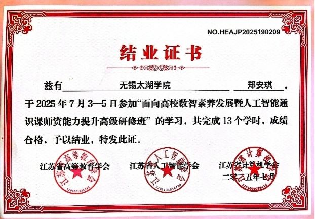 beat365在线唯一官网一直高度重视人工智能专业建设与教师队伍的持续发展,积极鼓励教师参与各类高水平培训和学术交流活动,不断提升教学科研水平。此次郑安琪、朱嘉仪两位老师的参训,是beat365官网紧跟教育数字化趋势、加强人工智能领域师资建设的有效举措。学校期待更多教师能将先进的教学理念和方法应用到课堂,为培养适应数智时代发展需求的高素质应用型人才贡献更多力量。