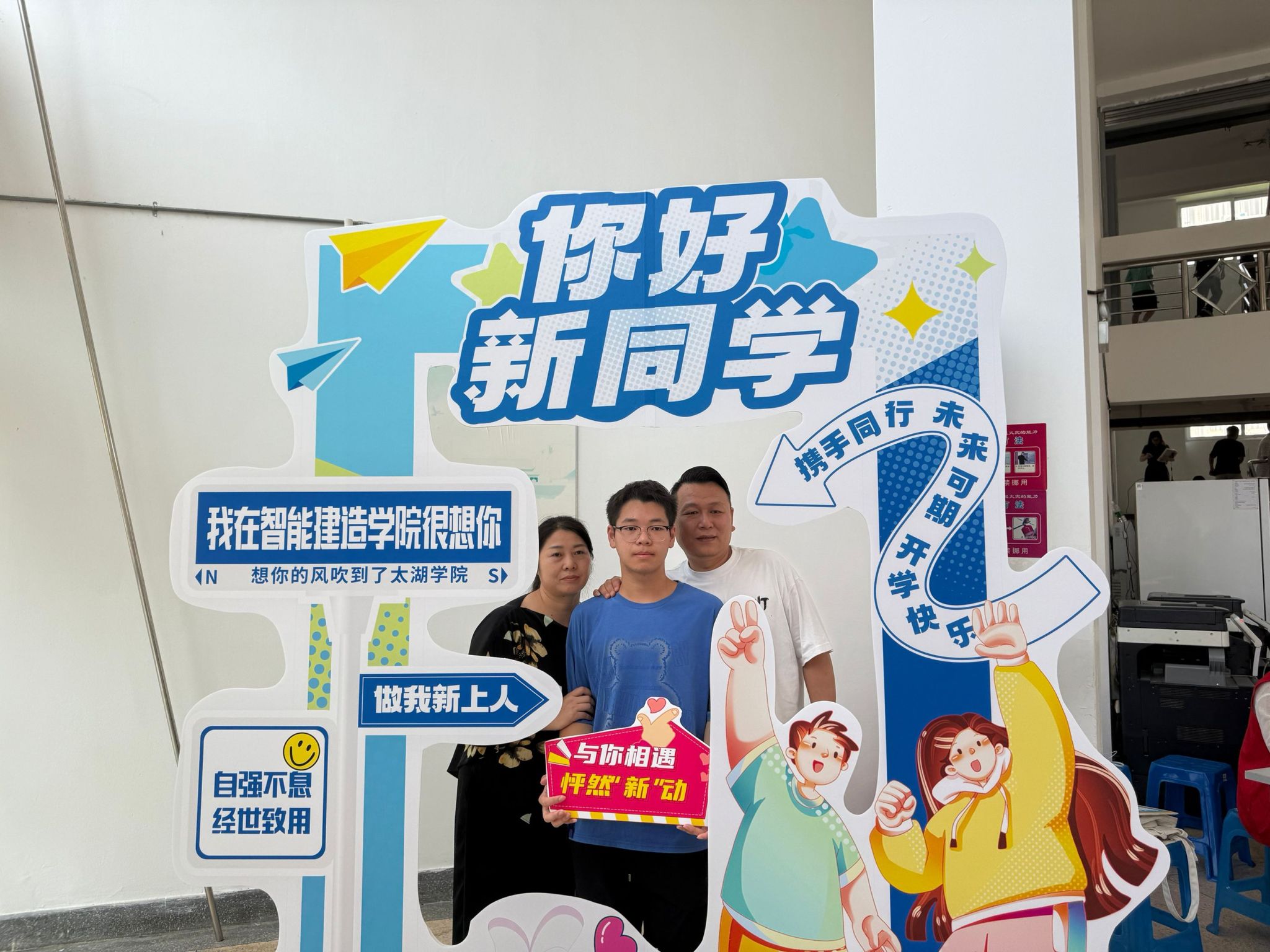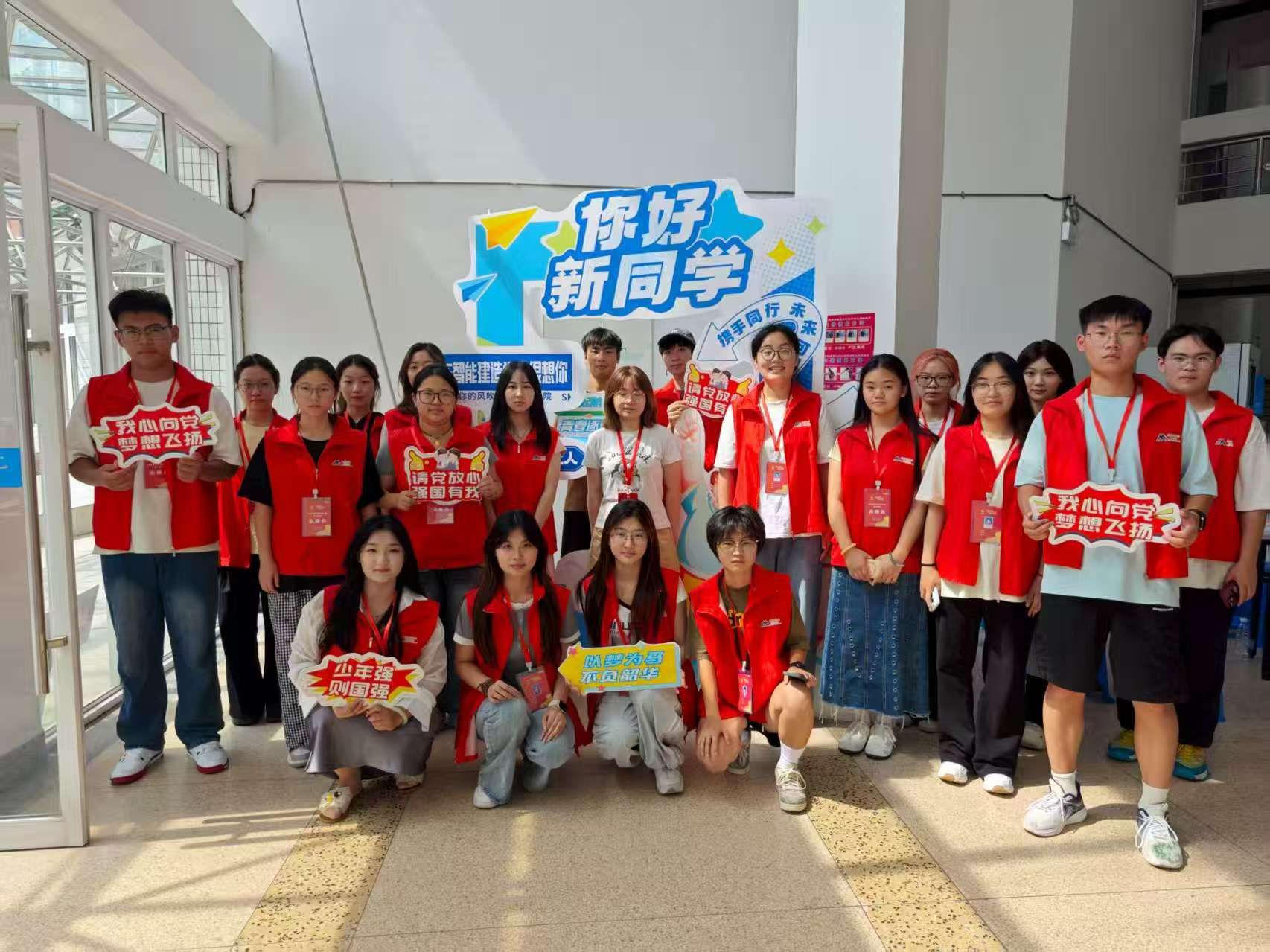 为保障新生报到顺畅,智能建造学院团总支及学生会提前招募培训了多名迎新志愿者。报到现场,身着统一服装的志愿者们分工明确、热情满满,成为校园里最亮眼的“志愿红”。在报到处,他们协助新生核对身份信息、提交材料、领取校园卡与物资,耐心解答新生及家长的问题;在宿舍区,志愿者帮新生搬运行李上楼,还主动分享宿舍生活小技巧,协助新生整理行李,用行动化解新生初到陌生环境的紧张感。学院还设置了新生报到打卡点,为新生和家长留下宝贵时刻。