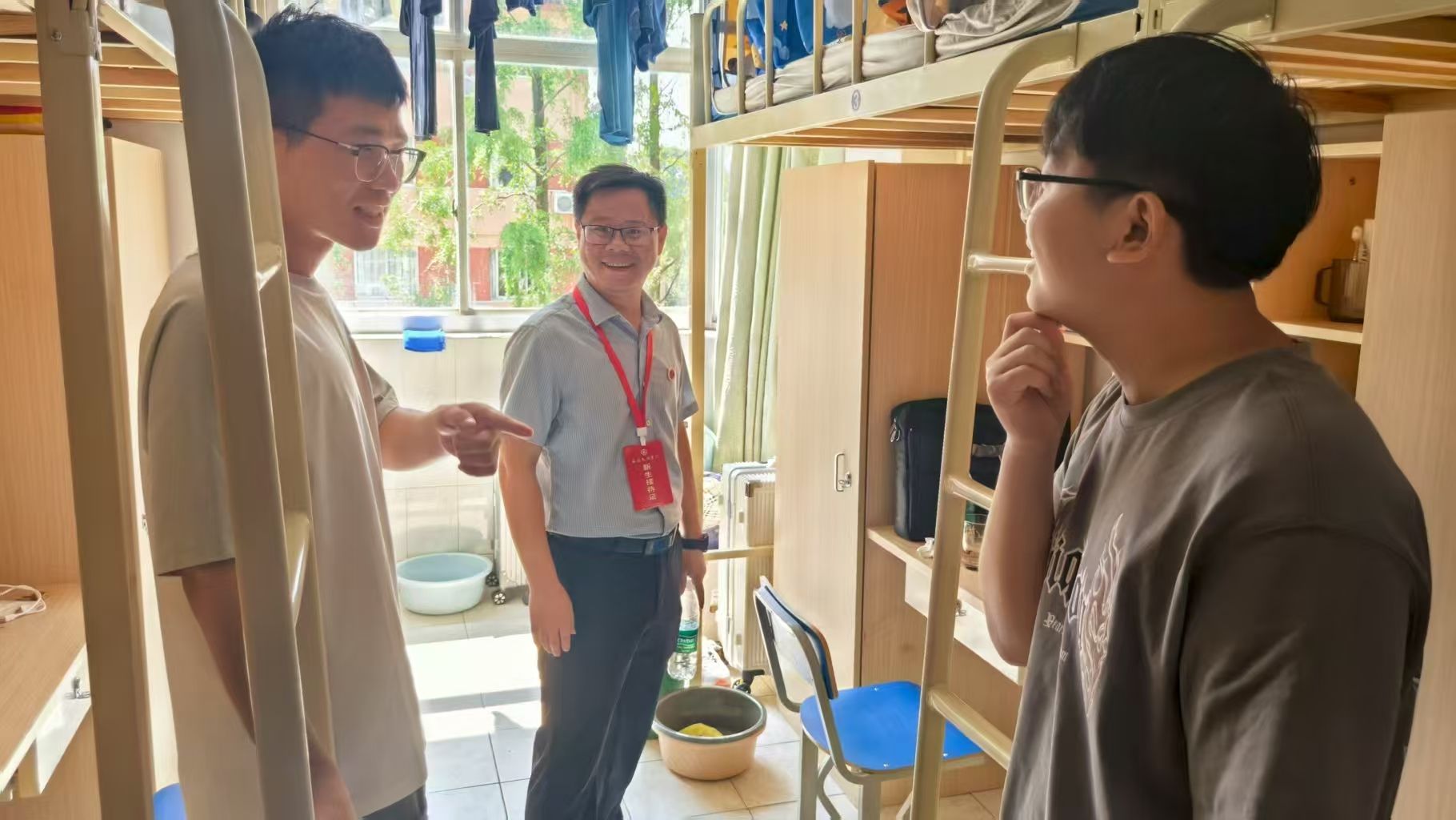 报到当天,学院林远健院长、余波书记等领导深入新生报到处、宿舍区检查指导工作。在学院报到点,学院领导仔细了解了新生报到情况,与志愿者们交流工作细节,与报到现场的新生及家长沟通交流,向他们表达学院的欢迎。随后,林院长和余书记走进学生宿舍,与刚入住的新生及家长亲切交谈,详细查看宿舍设施配备、环境卫生与安全保障情况,叮嘱新生“尽快适应集体生活,主动融入校园,在大学期间努力学习、全面发展”。领导的关切问候与细致叮嘱,让新生及家长感受到了学院的温暖与重视。