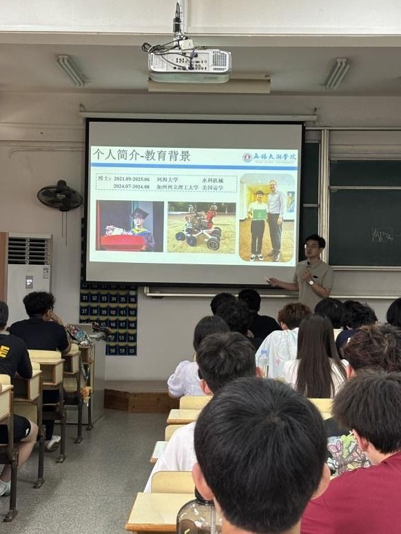 2025级专业班主任成先明老师分享自己在大学和研究生阶段的学习和比赛经历,鼓励学生积极参加各种实践活动,拓展知识的广度,探究知识的深度,珍惜大学的短暂时光。在学习之余培养一个长期的爱好,让爱好为你的人生增添更多的色彩。