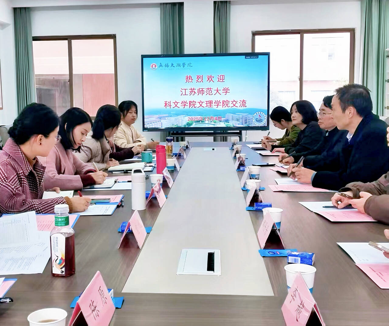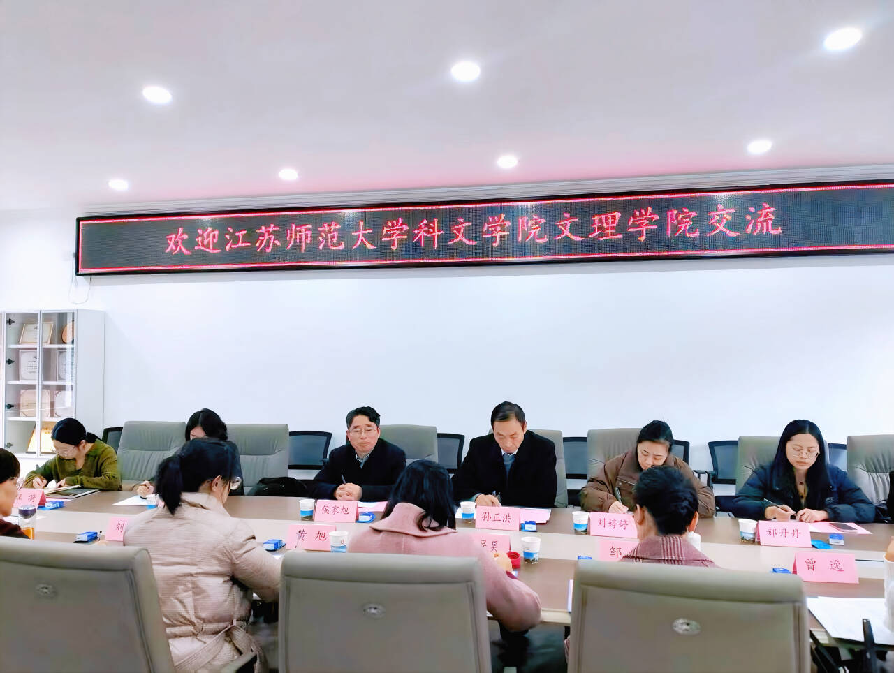 为深化教育教学改革,提升应用型人才培养质量,加强院际交流学习,12月4日下午,江苏师范大学科文学院文理学院莅临beat365官网开展交流学习。文法学院副院长黄旭(主持工作)、副院长刘荔、副院长吴旻昊、英语系主任邹璆、汉语言文学系主任曾逸、汉语言文学系教师陈原,江苏师范大学科文学院文理学院院长侯家旭、副院长孙正洪、副院长周鸣、外语系主任刘婷婷、中文系副主任汪漪、中文核心课程教师郝丹丹以及外语核心课程教师李越参与本次活动。