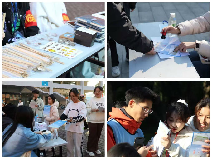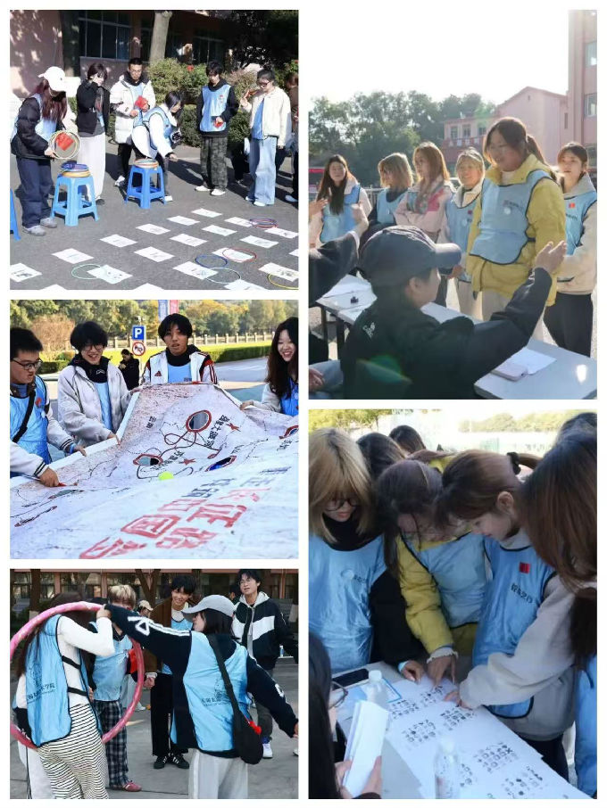 赛事进行中,同学们穿行于校园各处,探寻指定打卡点位并完成对应任务。这些点位不仅设置了妙趣横生的互动挑战与小游戏,更深度融入了多元文化元素。“垃圾分类套圈”环节里,大家仔细分辨垃圾的类别并成功套圈,培养了同学们的环保意识;“反转拼图”项目中,参赛者们则要在短时间内通过翻转将四个不同的筛子拼成一个完整的形状。面对挑战,同学们彼此激励,并肩作战,用团结的力量攻克了一个又一个挑战。