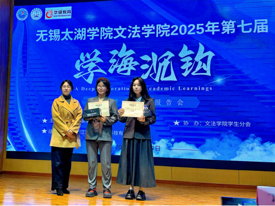 比赛结束后,黄院长为本次报告会作总结讲话。她指出,本次报告会以“无锡地方经济发展”与“本土文化传播”为核心议题,同学们围绕无锡智能制造、物联网等经济支柱产业发展以及吴文化、运河文化等本土文化传承创新展开研究,尽显青年学者扎实的学术积累、鲜明的研究意识与不断提升的学术表达能力,既展现出严谨慎重、脚踏实地的学术精神,更通过将学术探索与无锡地方实践紧密结合,形成了一批贴合地方需求的研究成果,为大学生创新创业大赛培育优质项目奠定了坚实基础,凸显出服务地方发展的责任担当。黄院长还对活动成效予以肯定,并勉励全体同学以此次“学海沉钩”报告会为新的起点,始终保持对知识的好奇心与敬畏心,在学术探索之路上持续深耕。