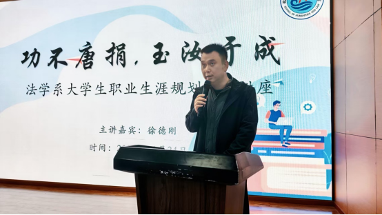 为帮助法学专业学子破解职业困惑,明确发展方向,文法学院于11月24日在南区大学生活动中心A三楼报告厅举办职业生涯规划主题讲座。本次活动由马克思主义学院徐德刚院长主讲,文法学院法学专业学生共同参加。