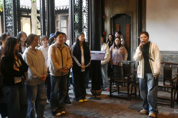 抵达故居,支部成员在讲解员带领下,依次参观前院“钱绳武堂”,与钱锺书叔父所建的后院。其中所展示的“文采传希白,雄风劲射潮”是钱氏家族的精神图腾,展现了老一辈教育工作者在战火中“以知识救国”的精神内核,成员们深刻感受到文学里的家国情怀,坚定作为一名新时代青年,更应该胸怀抱负,学习文人精神,传承文化基因的志向。