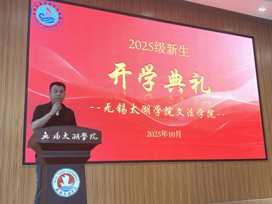 典礼伊始,俞书记上台致辞。他首先对2025级新生的到来表示热烈欢迎,强调大学是“成长的沃土、追梦的舞台”,寄语新生要“立鸿鹄志、做奋斗者”,在文法学院的平台上锤炼品德、深耕学识、提升能力,以青春之我书写时代答卷。