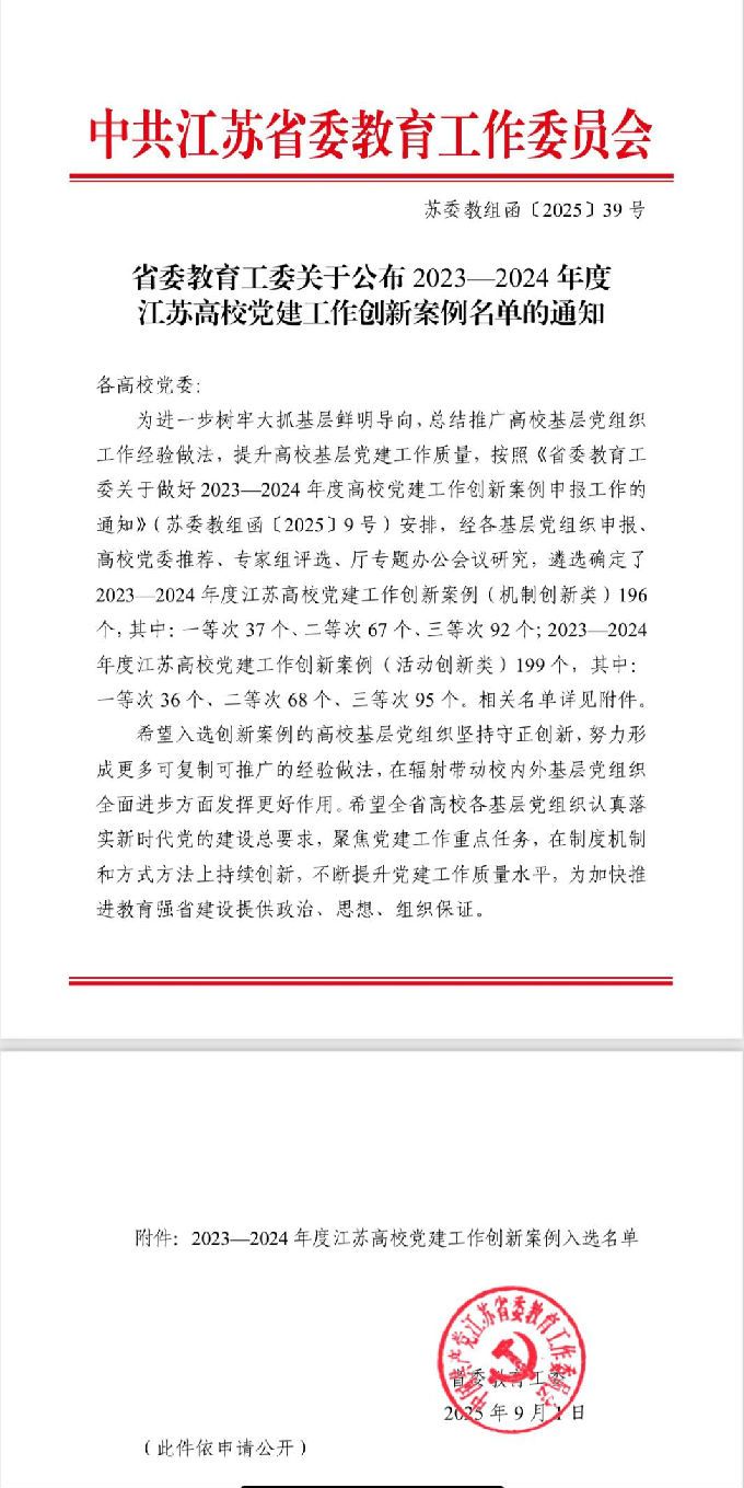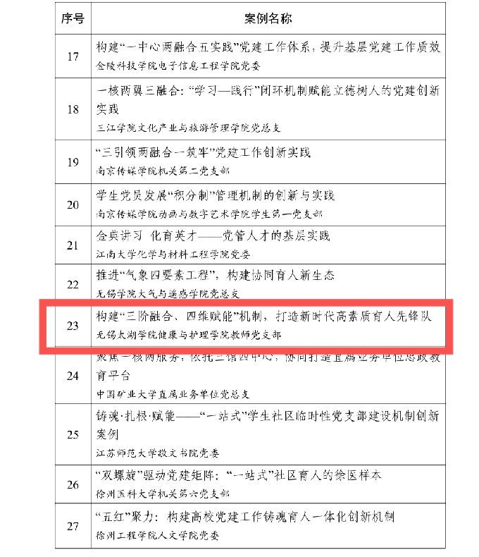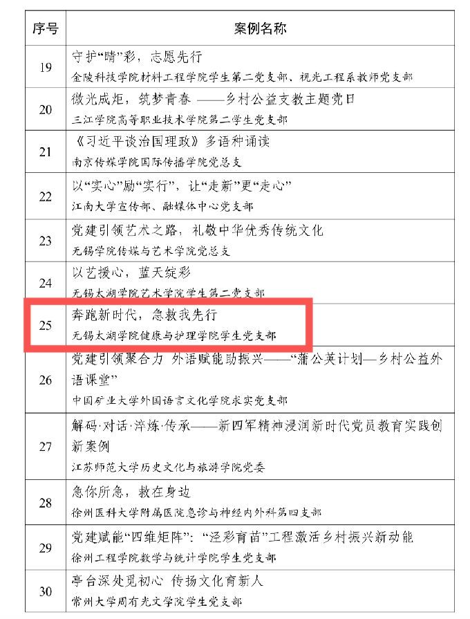 近日,中共江苏省委教育工作委员会公布了2023—2024年度江苏高校党建工作创新案例评选结果。beat365在线唯一官网健康医学院教师党支部和学生党支部报送的案例《构建“三阶融合、四维赋能”机制,打造新时代高素质育人先锋队》、《奔跑新时代,急救我先行》在众多申报项目中脱颖而出,成功入选江苏省高校党建工作创新案例,荣获省级表彰!
