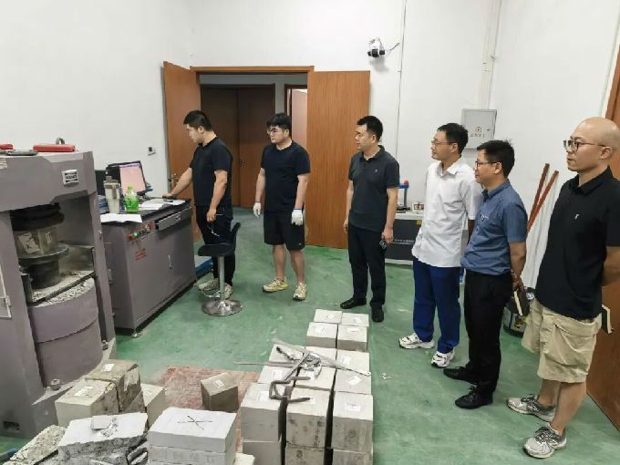 学院一行首先参观了企业的检测实验室,企业方介绍功能分区、核心设备(如压力试验机、回弹仪、智能化检测设备)及运作流程,学院领导直观了解其实践教学资源与技术实力。
