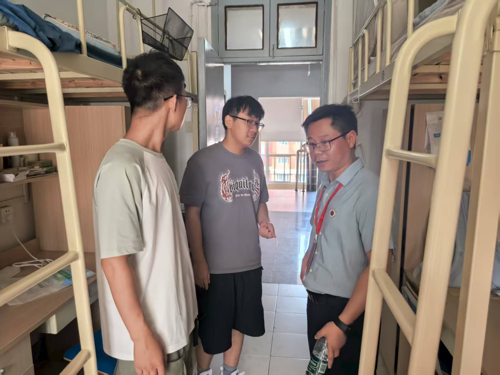 报到当天,学院林远健院长、余波书记等领导深入新生报到处、宿舍区检查指导工作。在学院报到点,学院领导仔细了解了新生报到情况,与志愿者们交流工作细节,与报到现场的新生及家长沟通交流,向他们表达学院的欢迎。随后,林院长和余书记走进学生宿舍,与刚入住的新生及家长亲切交谈,详细查看宿舍设施配备、环境卫生与安全保障情况,叮嘱新生“尽快适应集体生活,主动融入校园,在大学期间努力学习、全面发展”。领导的关切问候与细致叮嘱,让新生及家长感受到了学院的温暖与重视。