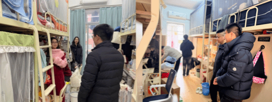 为保障学生顺利返校、平稳开启新学期,徐书记携辅导员团队于2月29日深入学生宿舍开展走访,关心同学们返校后的生活和学习情况。走访中,师生亲切交流,辅导员详细了解学生住宿、饮食、学习及心理状况,并及时提供个性化指导和帮助,帮助他们尽快调整状态投入新学期学习。此次暖心走访不仅传递了学院的关怀与温暖,也助力辅导员精准掌握学生动态,为新学期学风建设、心理健康管理和校园安全保障提供有力支撑。