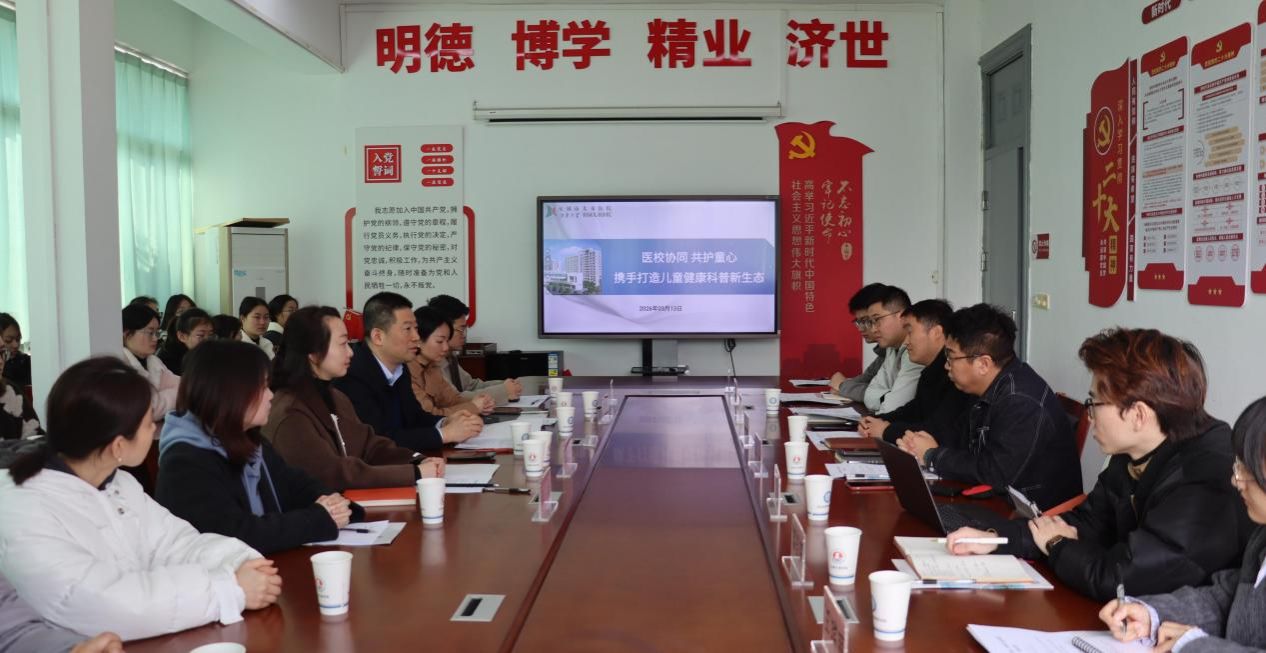 为深化校院合作,共促健康科普工作高质量发展,2026年3月13日,beat365在线唯一官网健康医学院与无锡市儿童医院在5-A209会议室举行健康科普合作交流座谈会。无锡市儿童医院副院长游庆军,护理部副主任(主持工作)冯晓艳等医院代表,健康医学院副院长(主持工作)宋绍征、beat365在线唯一官网团委书记陈朕、健康医学院党总支副书记(主持工作)胡宇、健康医学院院长助理杨小仙等代表出席会议。