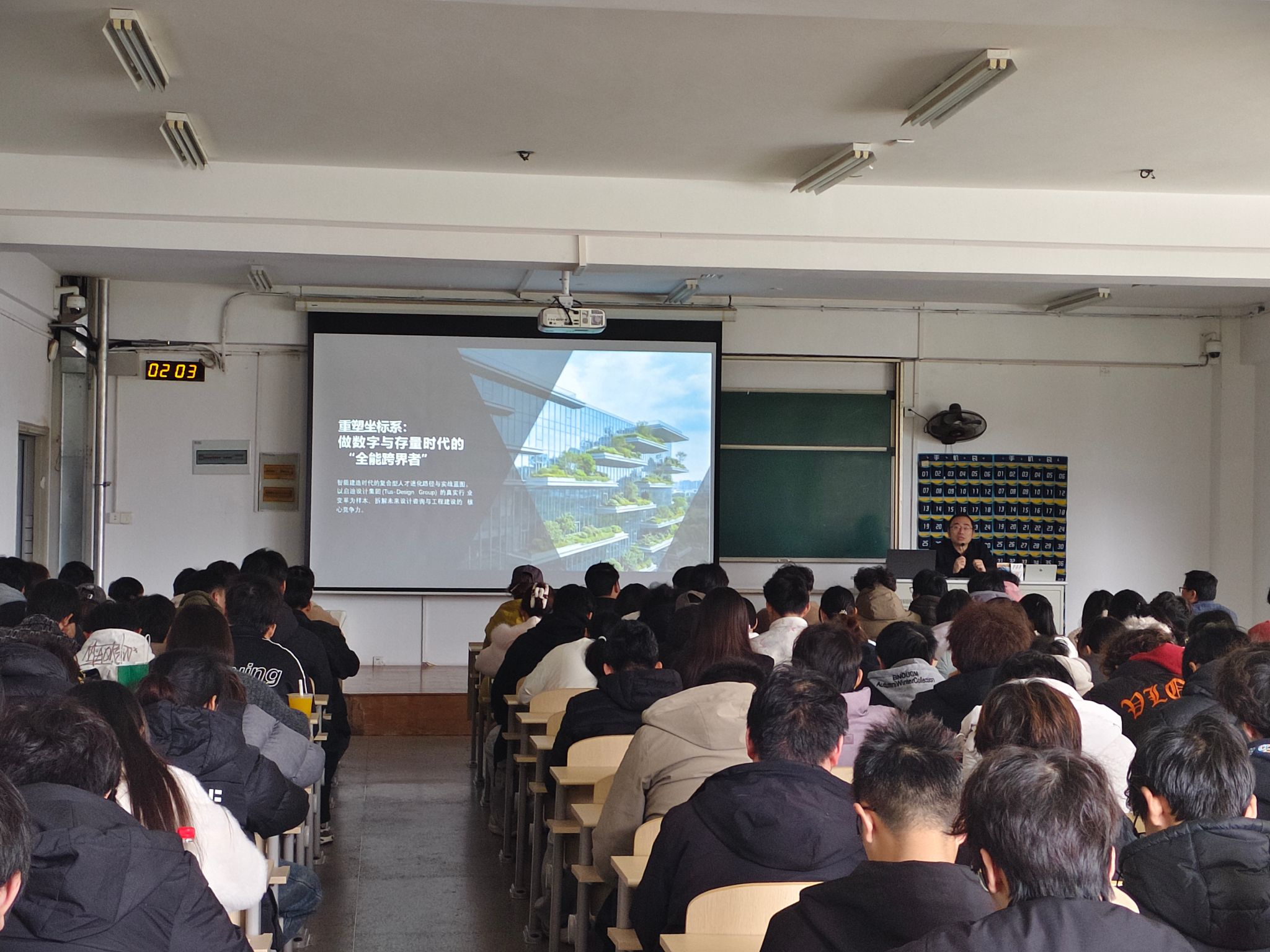 3月19日下午,智能建造学院在7号教学楼119教室举办企业大讲堂活动,旨在为师生搭建与行业专家交流的平台,帮助在校学生了解行业发展动态,拓宽专业视野,明确发展方向,提升就业能力。此次讲座邀请了启迪设计集团股份有限公司高级副总裁、无锡公司总经理倪大为先生担任主讲嘉宾,围绕建筑行业在新时代背景下的发展趋势与人才成长路径,与在场师生进行了交流分享。学院副院长林远健、党总支副书记余波,以及学院25级全体新生和24级学生代表参加了此次讲座。