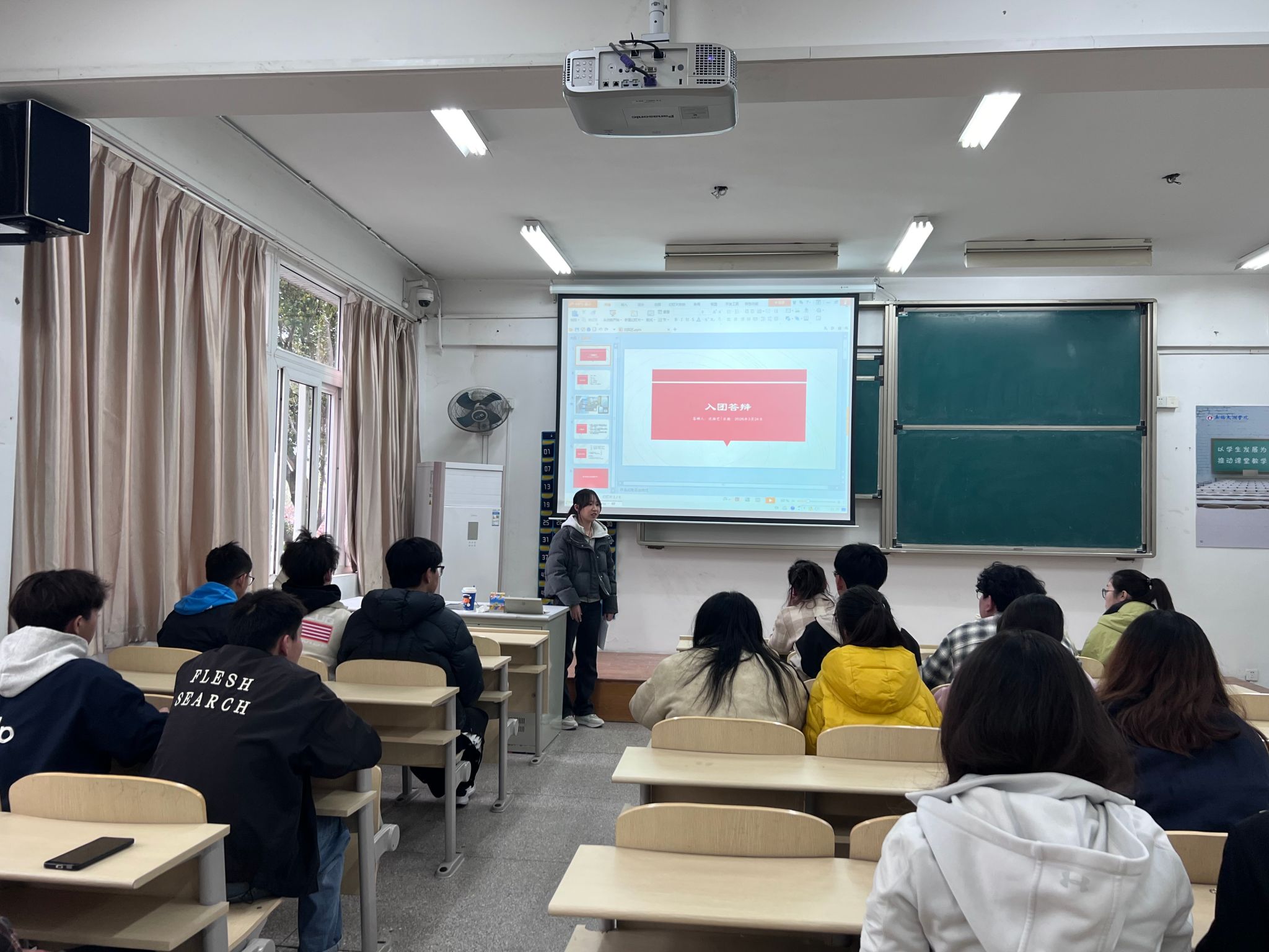 2026年3月24日下午三点半,智能建造学院在7号楼114号教室举办了入团答辩,旨在让学生树立正确的理想信念,提高思想觉悟,促进团员的增长,提高团意识,贡献意识,为祖国的未来注入更多红色血液,本次答辩由王蔚老师和答辩的同学共同参与。
