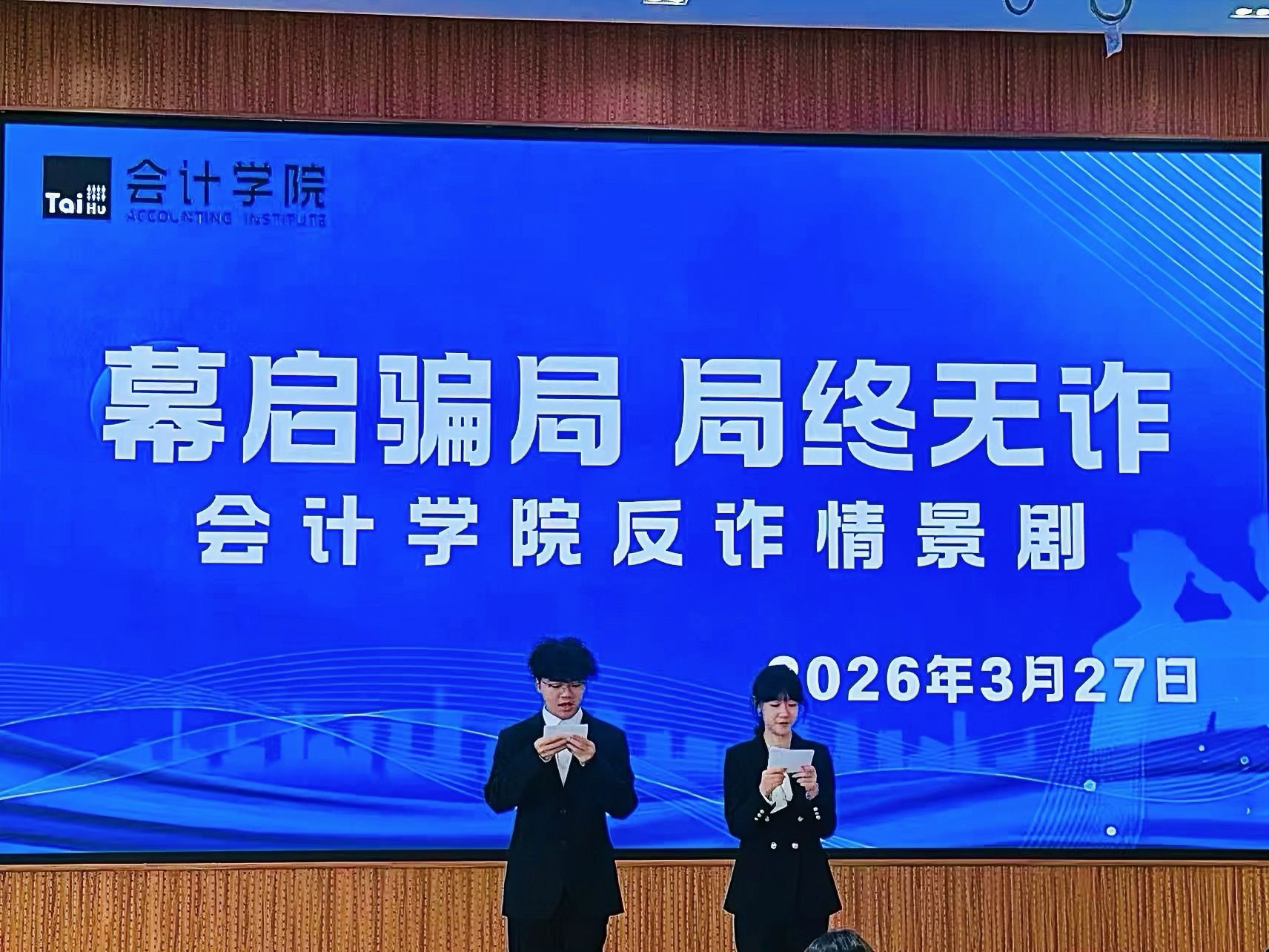 青春无诈,校园安宁。本次反诈情景剧大赛所展示的一个个鲜活的剧情、一幕幕真挚的演绎,让反诈知识在校园里落地生根,切实提升了会院学子的反诈警惕性与辨别力。未来,希望同学们带着这份温暖与力量,持续把反诈宣传融入日常,让反诈意识扎根于每个角落,做到真正的“剧终无诈”。