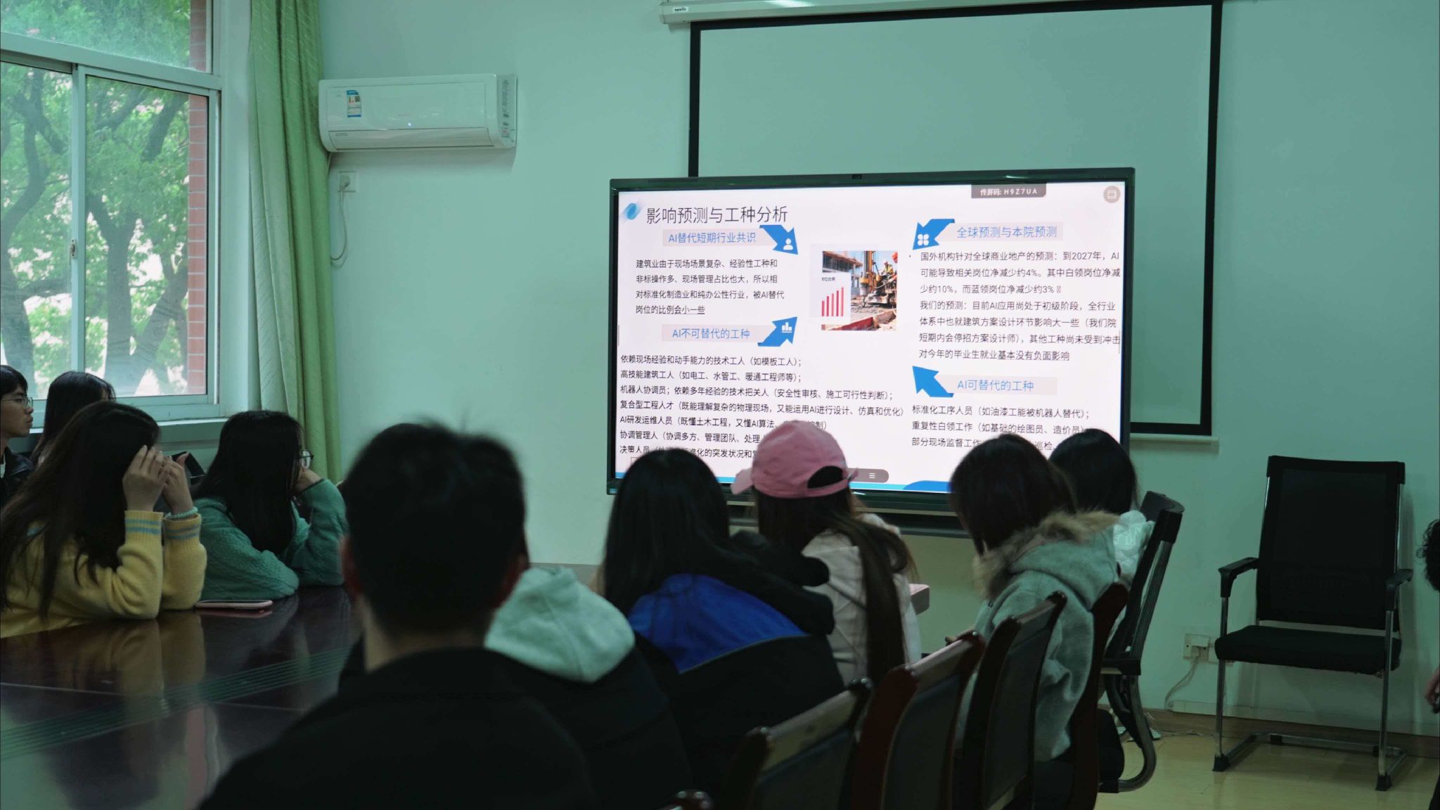 针对AI对就业的双重影响,许晓表示,传统重复性岗位将逐步被替代,而BIM工程师等新兴岗位需求增大,复合型人才紧缺。他鼓励同学们夯实专业基础、树立正确就业观,主动参与实践,重点关注传统与新兴领域相关岗位,实现自身价值。