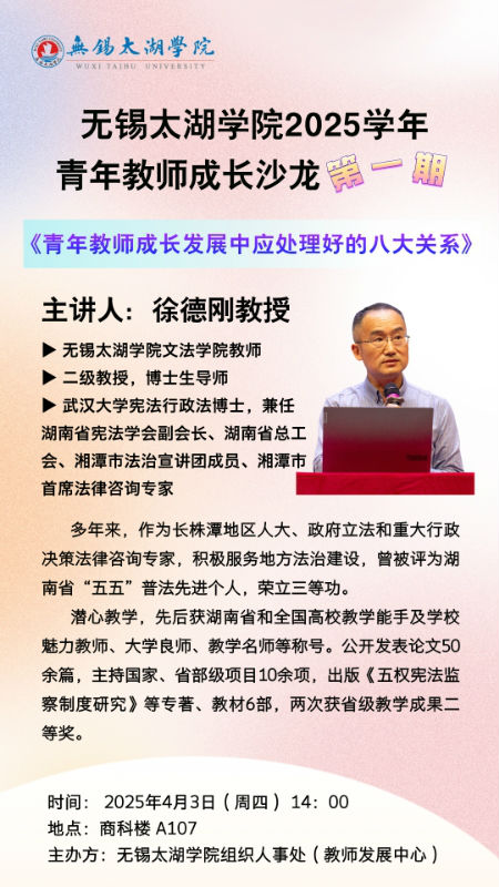 为了帮助学生更好的了解职场问题和职场法律,12月28日下午,无锡市司法局普法讲座在大学生活动中心A顺利开展。本次讲座由律师陈波主讲,文法学院党总支副书记俞昊波与文法学院法学系师生共同参与,沉浸式汲取职场法律知识与成长经验。...
