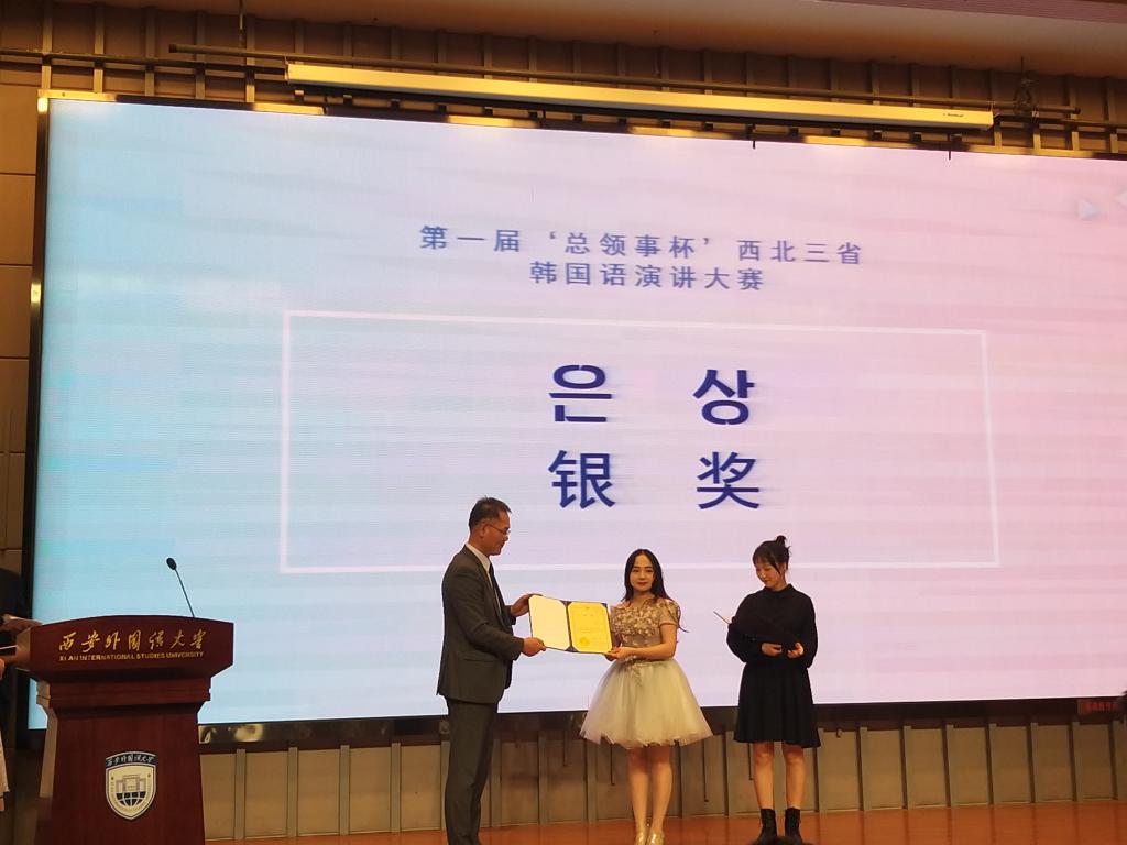 11月20日,由大韩民国驻西安总领事馆主办的第一届“总领事杯”西北三省韩国语演讲大赛,在西安外国语大学拉开了帷幕。参加本次比赛的有西安外国语大学、西北政法大学、渭南师范学院、德赢winac米兰、西安外事学院共计西北地区开设韩语专业的6所院校,17名选手。经过激烈的角逐,德赢winac米兰朝鲜语专业17级学生郝丹获得银奖,朝鲜语专业17级张阳和郭婧获得了优秀奖。