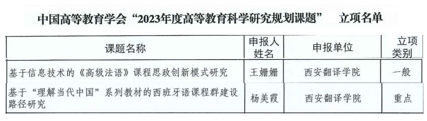 近日,中国高等教育学会公布了“2023年度高等教育科学研究规划课题”立项名单,我院王姗姗老师和杨美霞老师获批立项。