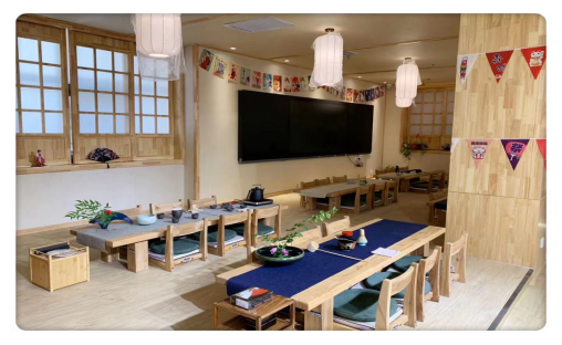 日本文化体验馆以日式建筑风格为基础设计,面积134平方米,供智慧教学与日本文化体验等课程教学与第二课堂活动开展使用。