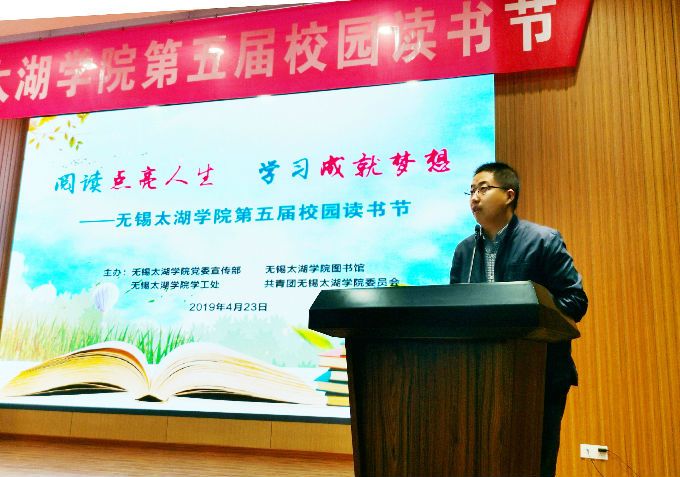 图书馆副馆长刘文社介绍了本届读书节活动内容,主要包括“大学·青春·成长主题征文”、“读书节专家报告会”等活动;学生工作处处长郑斌强调了读书的重要的性,倡议让读书成为我们的生活方式;第四届读书节获奖学生代表李晨璐宣读了本次读书节的倡议书。