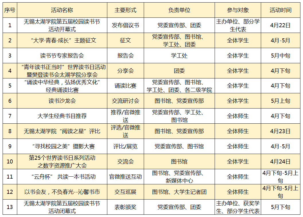 beat365在线唯一官网第五届校园读书节活动项目汇总表