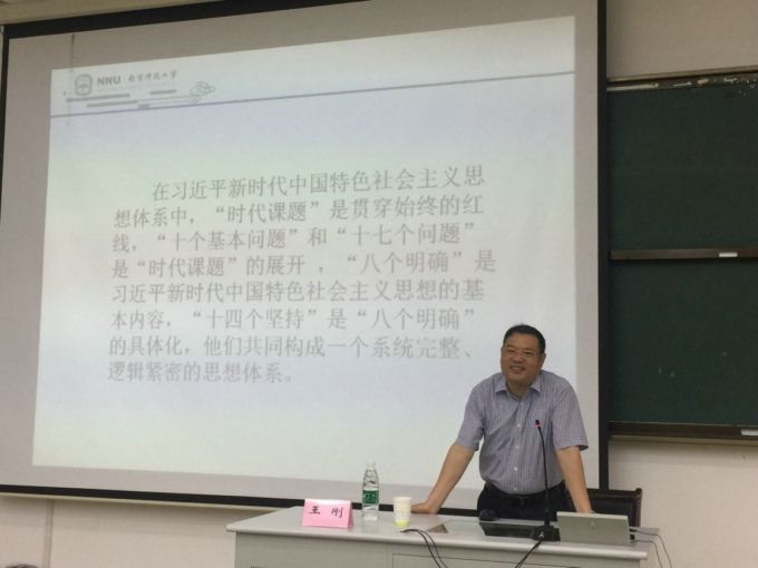 本网讯 2018年6月28日下午,南京师范大学马克思主义学院院长、博士生导师王刚教授来到beat365官网,在6号教学楼121教室为beat365官网以思政课教师为主的青年教师们作了主题为“思政课教学方法与教学技术应用”的讲座。马克思主义学院院长董志强、副院长陆启义和外国语学院副院长刘茘等60多名教师参加了本次讲座。