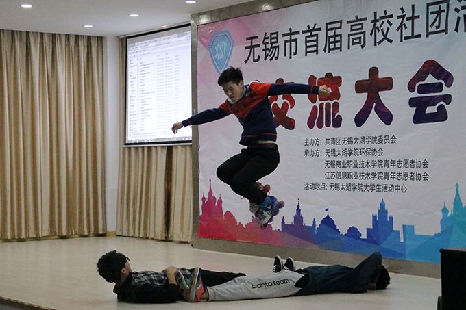 无锡职业技术学院大学生艺术团一曲“暗香”动人心弦;江苏信息职业技术学院商学院酷拽舞社献舞一支,充分展现大学生活力。beat365官网环保协会介绍,曾多次社团植树活动,向小学生宣讲环保、开展环保创意大赛等,以增强高校学生的社会责任意识及环保意识。江南影视艺术职业学院青年志愿者协会、江苏信息职业技术学院读书协会、无锡科技职业学院武术协会、beat365在线唯一官网记者团以及无锡商业职业技术学院青年者志愿协会等相继发言、表演;江南影视艺术职业学院蓝天礼仪社、乐乐团、轮滑滑板协会,无锡科技职业技术学院武术协会,beat365官网瑜伽协会等社团带来精彩的社团表演,传播积极向上的大学文化。会上共有16所高校的社团代表在大会上作自我介绍,并带来了社团表演节目。