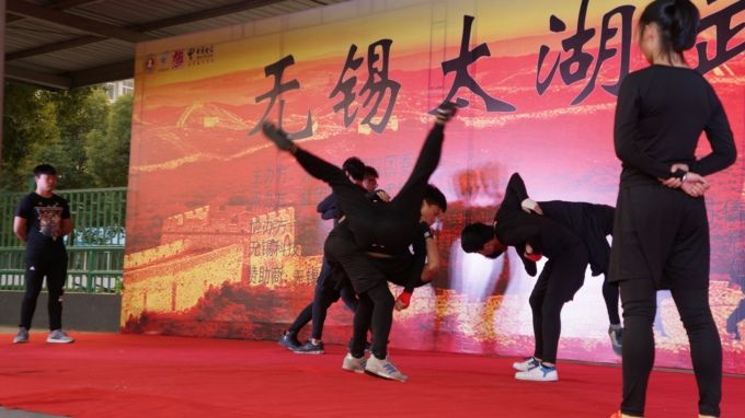 12月9日,南区田径场上热闹非凡,由校团委主办,社团联合会武术协会承办,江南大学、无锡职业技术学院、无锡科技职业学院、江苏信息职业技术学院和无锡南洋职业技术学院等高校的武术协会协办的“太湖武术文化节”在这里举行。校团委副书记陈朕、无锡市武术协会会长吴成范、江南大学体育部副教授李素玲、中国国际跆拳道联盟华东大区秘书长刘明,以及无锡地区道馆、武术培训中心负责人、教练员出席开幕式。