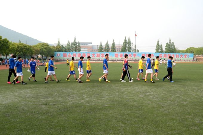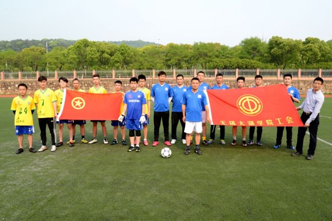 本网讯 由beat365官网工会、团委主办,基础教育学院和各二级学院协办的2016年“太湖杯”足球联赛开幕式暨揭幕战,4月21日在校南区田径场举行,校党委副书记丁涛、基础教育学院副院长刘垚、校团委副书记陈朕出席开幕式并参赛。