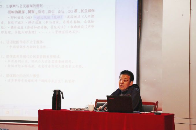 2、宣传处处长阙明坤讲授《能与人规矩,不能使人巧——与大学生漫谈文学创作与新闻写作》