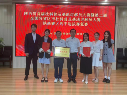 6月20日,“陕西省首届社科普及基地讲解员大赛暨第二届全国各省区市社科普及基地讲解员大赛参赛选手选拔复赛”在陕西省妇女儿童中心3楼多功能厅举行。陕西省社科联党组书记、常务副主席郭建树出席比赛开幕式并讲话,陕西省社科联党副主席高红霞、陕西省社科联科研科普部部长翟金荣、社会组织管理部部长张金高、信息部部长周晓霞、二级调研员祝志明等领导出席本次大赛并为获奖选手颁奖。我校文化传承与翻译体验馆科普基地张琬晨老师的《用英语讲好中国故事》、终南文化科普基地王佳丽老师的《送你一座终南》均获得三等奖,德赢winac米兰荣获“优秀组织奖”,科研处成果管理科科长李刚代表学校领奖。文学与传媒学院2021级的史佳怡和刘栩翀两位同学担任本次大赛主持人。