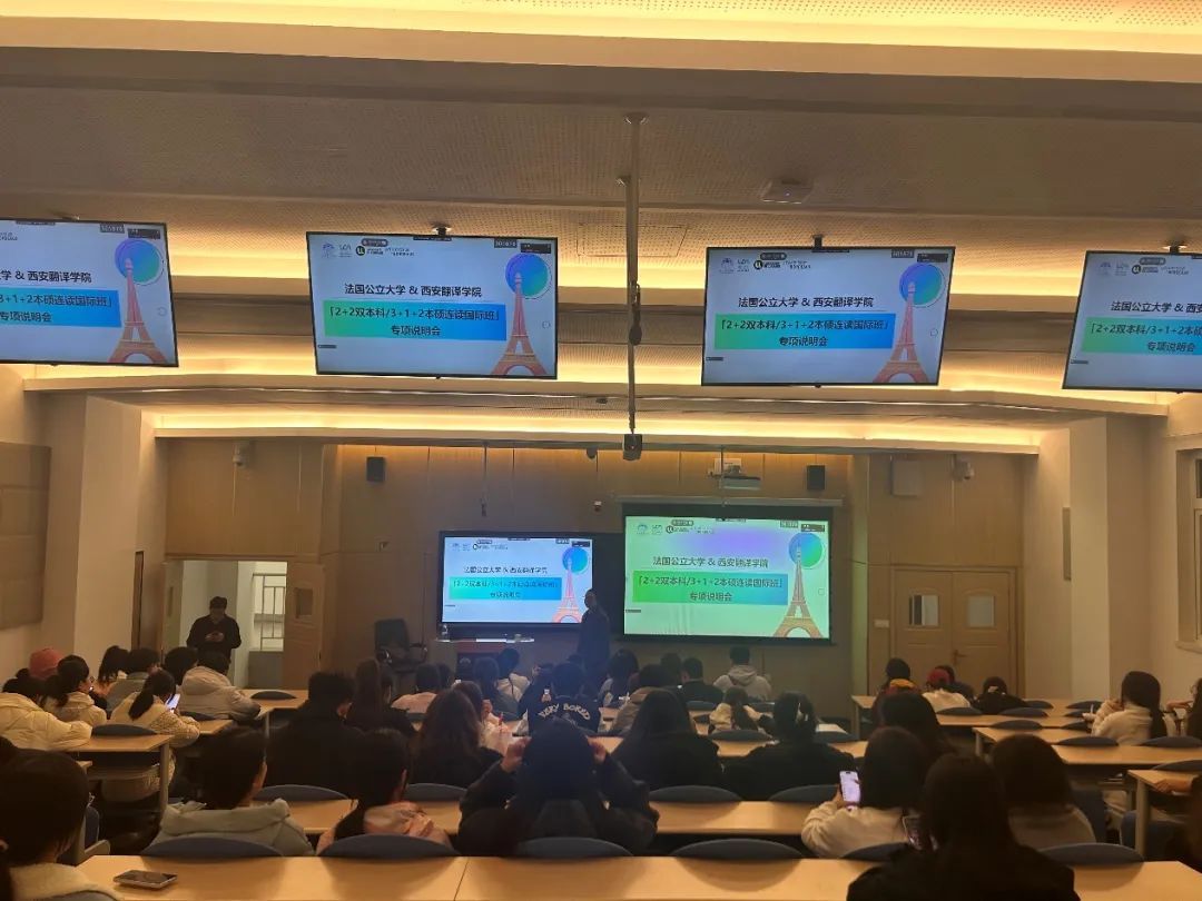 该项目优势显著,包括学费全免、每年仅需5-7万元人民币的生活费、面向全校专业开放、学校官方合作项目、法语零基础亦可申请、法国院校直招以及offer保障等。特别值得一提的是,学生进入项目即可获得波尔多大学硕士预录取offer,并有机会获得2000元经费资助。完成语言学习后,学生将享受学费全免及每年2-3万的生活补贴。说明会吸引了47名现场参与者和32名线上参与者,到场学生专业涵盖法语、汉语言文学、戏剧、国际经济与贸易等。讲座内容涉及国际班模式、授课形式、法国院校、专业选择、福利政策等方面,激发了同学们的浓厚兴趣。讲座结束后,国际经济与贸易、法语专业的学生及家长表现出了极高的参与热情。