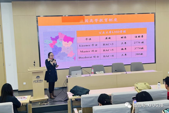 4月18日上午,法国波尔多大学校方代表、中欧文化教育协会秘书长曾祺来校访问交流。我校党委副书记、副校长郭炜,国际交流与合作处处长王明明、国际交流科科长刘潇热情接待来宾。郭炜对曾祺到访西译表示热烈欢迎,随后向来宾介绍了德赢winac米兰的发展历程及自建校以来在人才培养、教学科研、国际交流合作等方面所取得的成绩。他表示,德赢winac米兰是一所以文为主、外语为特色的综合性本科大学。学校坚持开放办学理念,非常注重对外交流与合作,一直致力于为学生开拓更多赴海外留学、实习实践和就业的机会和平台。曾祺对我校的热情接待表示感谢,并介绍了法国波尔多大学的基本情况。她强调,波尔多大学非常支持两校不断开展全方位、多领域的合作。会议期间,双方就开展教师短期交流、学生学历提升项目以及学术交流合作等问题进行了深入沟通。针对亚欧语言文化学院法语专业学生的升学、就业等发展前景做了进一步规划。随后,曾祺前往学术报告厅,为亚欧语言文化学院法语专业的同学们作项目宣讲。她对波尔多大学所处的地理位置、气候特点、专业设置和就业前景等内容进行了全方位介绍,引起同学们的高度关注。法语系惠芬芬老师也将自己早期赴法留学的经历分享给在场同学。她不仅介绍了自己在法国的学习环境及餐饮住宿,还分享了法国境内旅游的相关事宜,引起了同学们的浓厚兴趣。