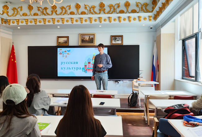 6月6号下午,亚欧语言文化学院在俄罗斯文化体验馆内举办俄罗斯文化讲座,学院外教Алексей担任主讲。