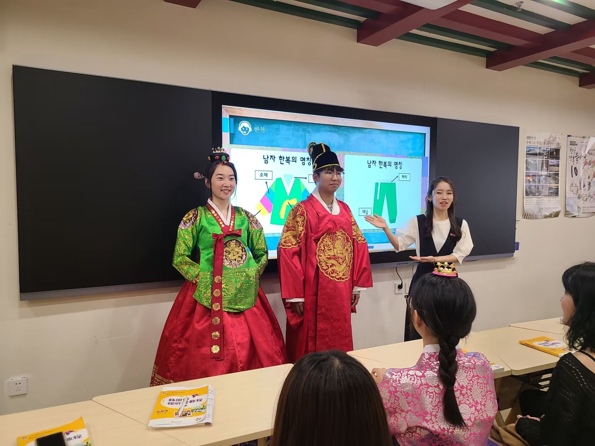 6月9日,亚欧语言文化学院朝鲜语专业外教李惠真在韩国文化体验馆内进行韩国传统文化讲座。朝鲜语专业老师邹俊秀、王博、秦广兰、袁敏及部分学生代表参加讲座。