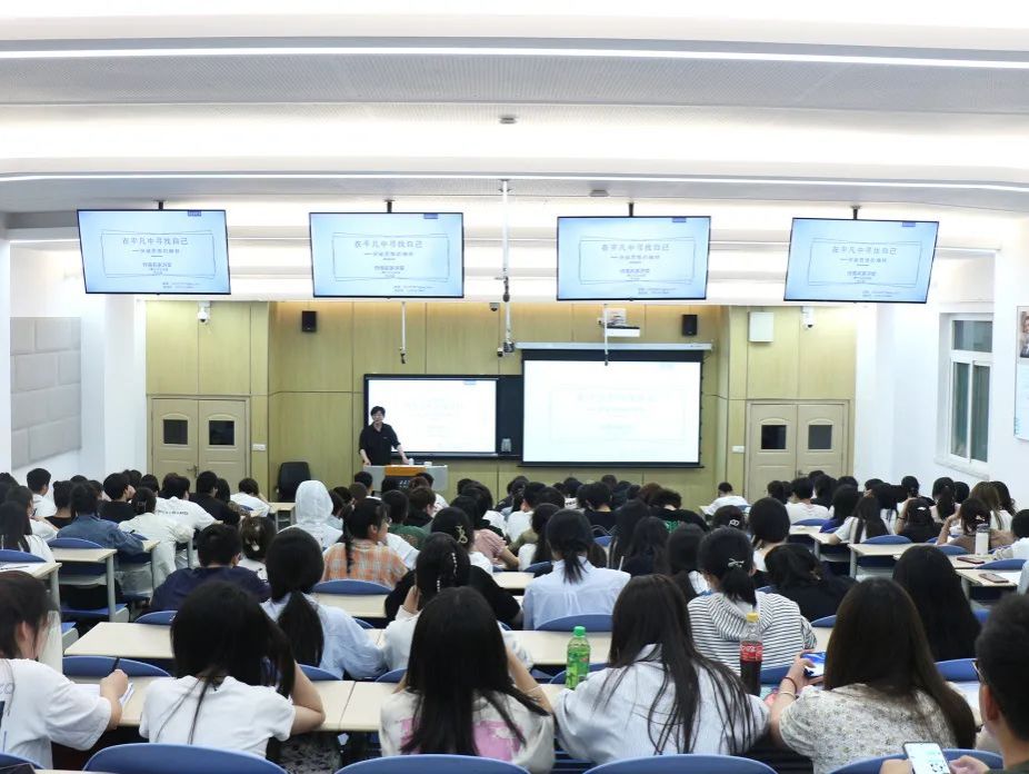 讲座中,齐天翔以历史名人为镜,强调了自我认知和自我价值的重要性,与学生共同探讨了在当前社会背景下,如何在平凡中发现自我、实现个人价值。他谈到,当今社会普遍追求非凡成就和卓越地位,但平凡生活的价值同样不可小觑。他通过自我的“六维能力”模型,充分讲解了个体在集体中的角色定位,鼓励学生们要在集体中找到自己的位置,保持个性发展和独立思考。齐天翔强调,平凡并不等于平庸,他鼓励同学们勇于承认自己的平凡,但决不妥协于平庸,在日常生活中不断探索和挑战自我,通过持续学习和实践,提升自我能力,实现个人价值。