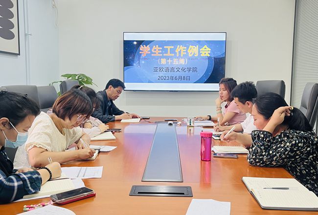 为进一步做好学院学生教育、管理、服务、学风建设等工作,确保各项学生工作有效落实,6月8日上午,亚欧语言文化学院召开学生工作例会。学院党委书记、副院长宇文永康,学工办主任尹娜、团总支书记陈福礼及全体辅导员参会。