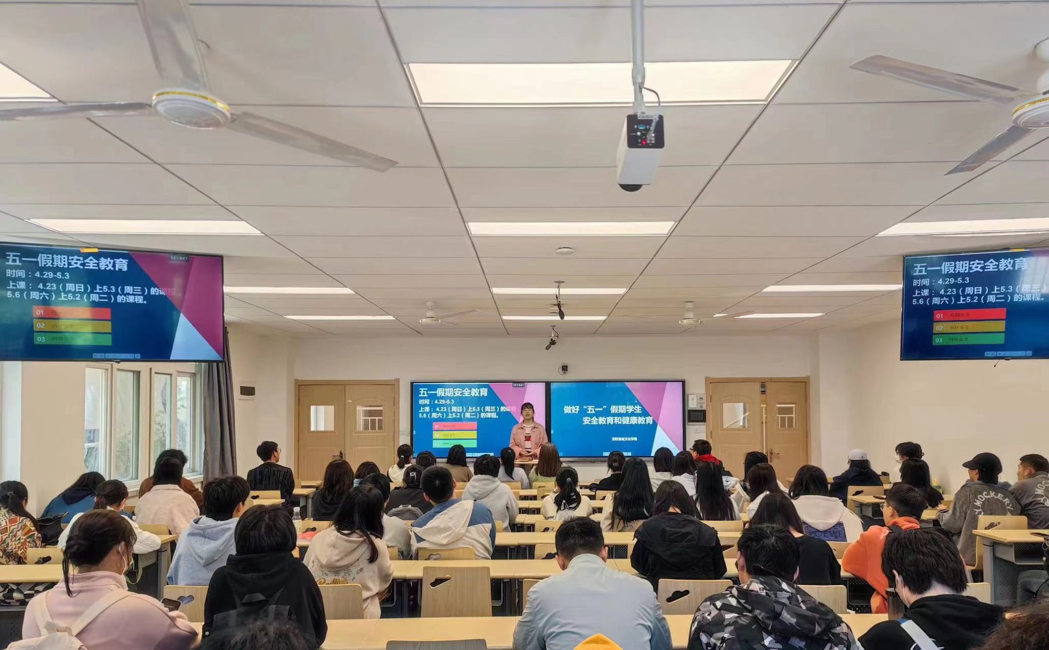 会议中,各辅导员首先将学校的放假时间安排和补课相关事项向大家做了通知,并通过PPT演示、举实例等多种形式把安全教育融入其中,向同学们诠释了安全的重要性,并从交通安全、食品安全、网络安全、消防安全、宿舍安全、预防溺水安全等多个方面开展了安全专题教育,特别强调同学们在离开宿舍时要切断电源,锁好门窗,做好防火防盗工作,外出时不搭乘存在安全隐患的交通工具,注意人身和财产安全,警惕传染病和各类电信诈骗,远离危险水域,不参加探险活动,严格遵守学校的规章制度,践行社会公德意识,外出的同学要合理安排行程,提前订票并按时返校。同时,辅导员也强调假期留校的同学,一定要遵守寝室的规章制度,注意寝室安全用电,严禁使用违规电器,在寝室里不抽烟、不酗酒,注意宿舍卫生,假期期间一定要合理安排作息,加强身体锻炼,促进自身德智体美劳全面发展。最后,辅导员提醒同学们一定要做好自身安全的第一责任人。