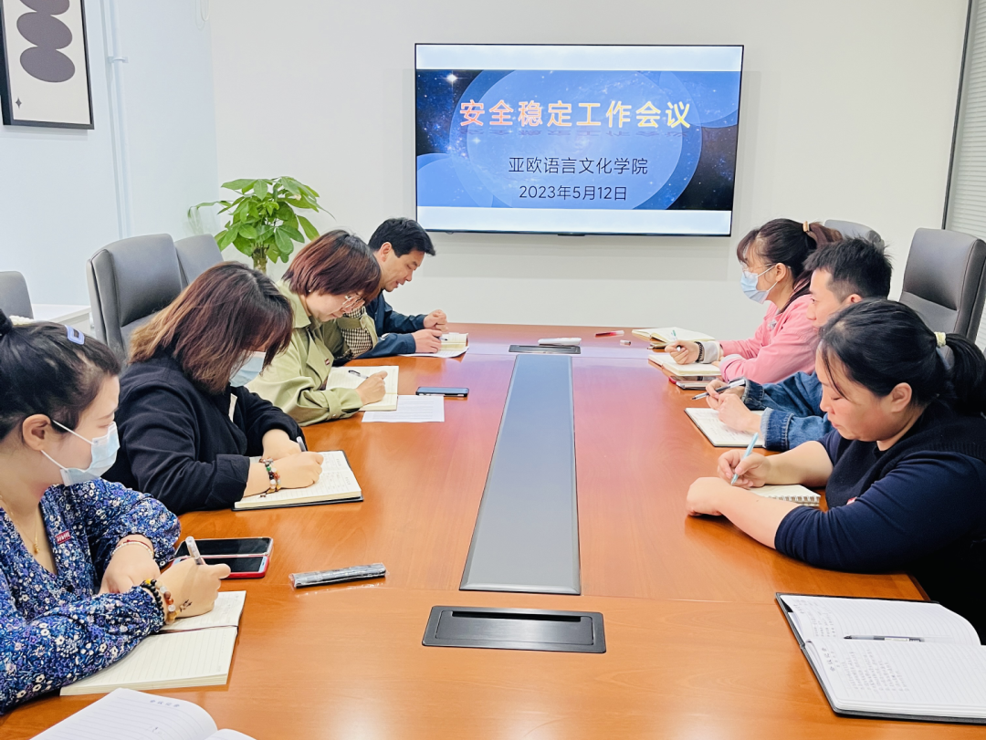 5月12日上午,为传达5月10日省教育工委安全稳定工作会议精神和学校领导的指示精神,亚欧语言文化学院在三号楼创咖会议室召开安全稳定工作会议,学院党委书记、副院长宇文永康,学工办主任尹娜、团总支书记陈福礼及全体辅导员参会。