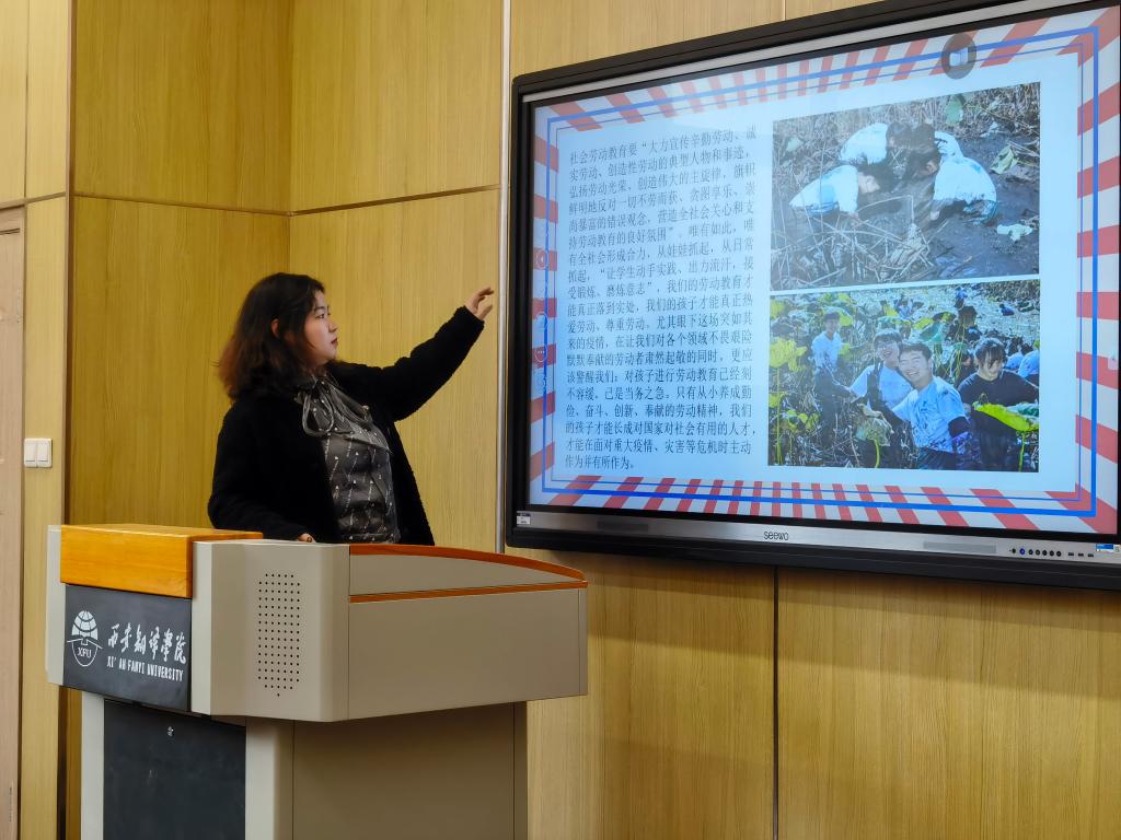 2021年3月17日下午,亚欧语言文化学院在西区4220T教室成功举办《劳动教育认知与实践》知识讲座。主讲人为辅导员鲁兴老师,分院2020级全体学生参与此次讲座。鲁兴老师围绕习近平总书记在全国教育大会上指出的要“培养德智体美劳全面发展的社会主义建设者和接班人”展开讲述。强调“要在学生中弘扬劳动精神,教育引导学生崇尚劳动、尊重劳动,让学生们从本质上理解劳动最光荣、劳动最崇高、劳动最伟大、劳动最美丽的内涵,从而做到辛勤劳动、诚实劳动、创造性劳动”。劳动教育主要通过家庭、学校、社会三方面来体现,家庭是基础地位;学校是主导地位;社会在劳动教育中起到支持作用,我们只有将三者有机的统一起来,才能将我们的劳动教育深入贯彻落实。除此之外,鲁兴老师还向学生们展示了其他高校在践行劳动教育中的一些有效举措,号召我们全体学生认真学习。