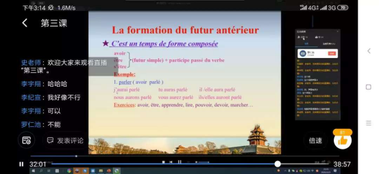 2020年的春节对于每一个中国人来说注定是一个特殊的春节,而对于亚欧语言文学院的史晓琴教授来说,更是一个难忘的经历。史教授在接到学校“停课不停学,教学不延期”的通知后,积极行动进行线上授课的准备。尽管自身的网络技术技能欠缺,但为了不影响教学,不给系上添麻烦,自己整宿整宿地揣摸、研究每个相关软件、系统及学校课程平台的操作方法和使用功能。同时,多次通过网络、电话等手段咨询商家和学校的泛雅建课qq群的的老师。为了能够保证直播效果,下载了多个直播软件,多次对学生进行试播,以便对比效果,保证质量。在对学生试播之前,还与因“疫情”隔离在外的儿子单独建群,互换角色进行直播演练,以便掌握直播效果。