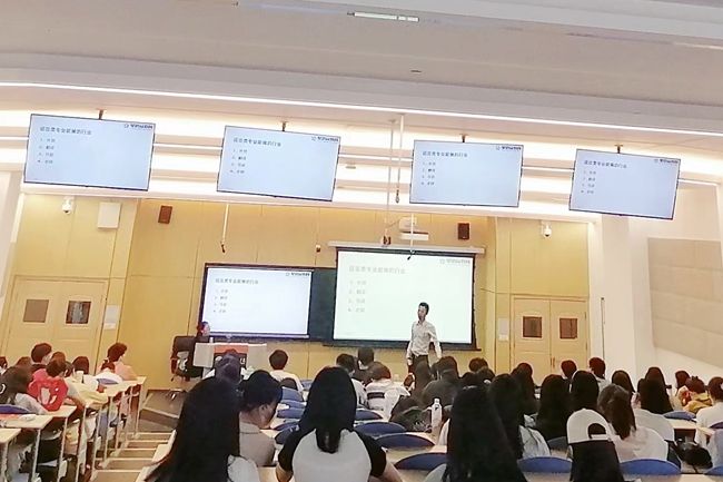 座谈会之后,曾河在4109T教室开展了宣讲会,亚欧语言文化学院各专业学生代表积极参会。宣讲会上,曾河从社会对小语种的需求角度,鼓励广大小语种专业学生务必树立信心,做好职业规划,学好专业知识,提高各项技能,为将来步入社会打好基础。随后他介绍了星语众教育的发展历程、教学环境与师资、人才培养体系、薪资与福利、晋升空间与发展等事宜。他表示,星语众教育面向日、韩、法、德、西小语种,以商务与考级为一体,针对小语种专业教育和培训,给予广大小语种专业学生提供广阔舞台来实践所学专业知识,他欢迎大家加入星语众教育,在不断的教学实践和技能锻炼中,充分应用专业知识、强化专业知识,努力成长为小语种领域的精英人才。