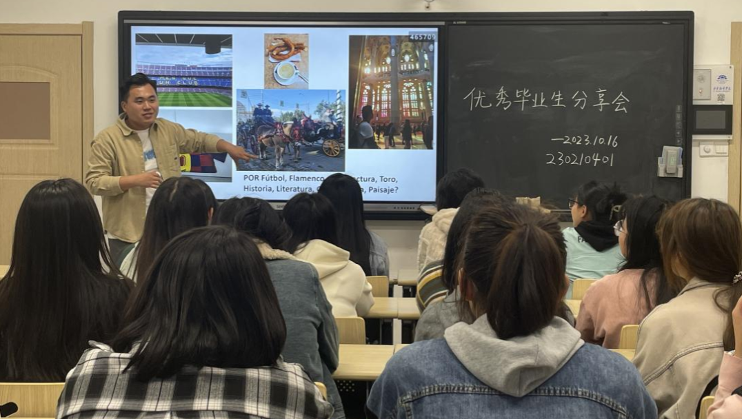 为进一步发挥优秀校友的榜样作用,切实满足同学们在西班牙语学习过程中的需求,明确西班牙语就业方向、增强学习动力,10月16日和17日,西班牙语专业进行了优秀校友和用人单位经验分享系列新生教育活动,对2023级新生开展新生职业规划教育。